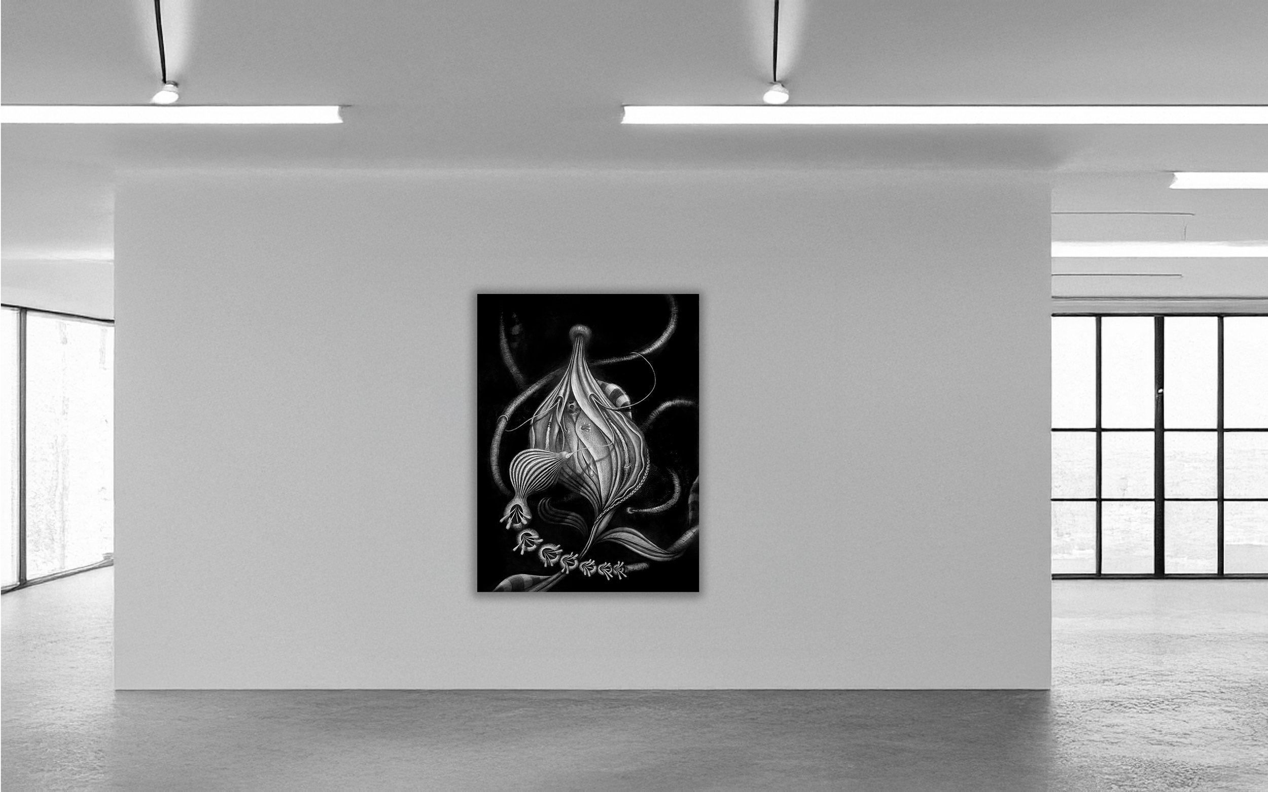 These pieces are graphite on gessoed wood panel. They’re prepared with an archival coating which prevents smearing and eliminates light sheen. Shipped via Fedex ground and ready to hang. Tax and shipping additional.