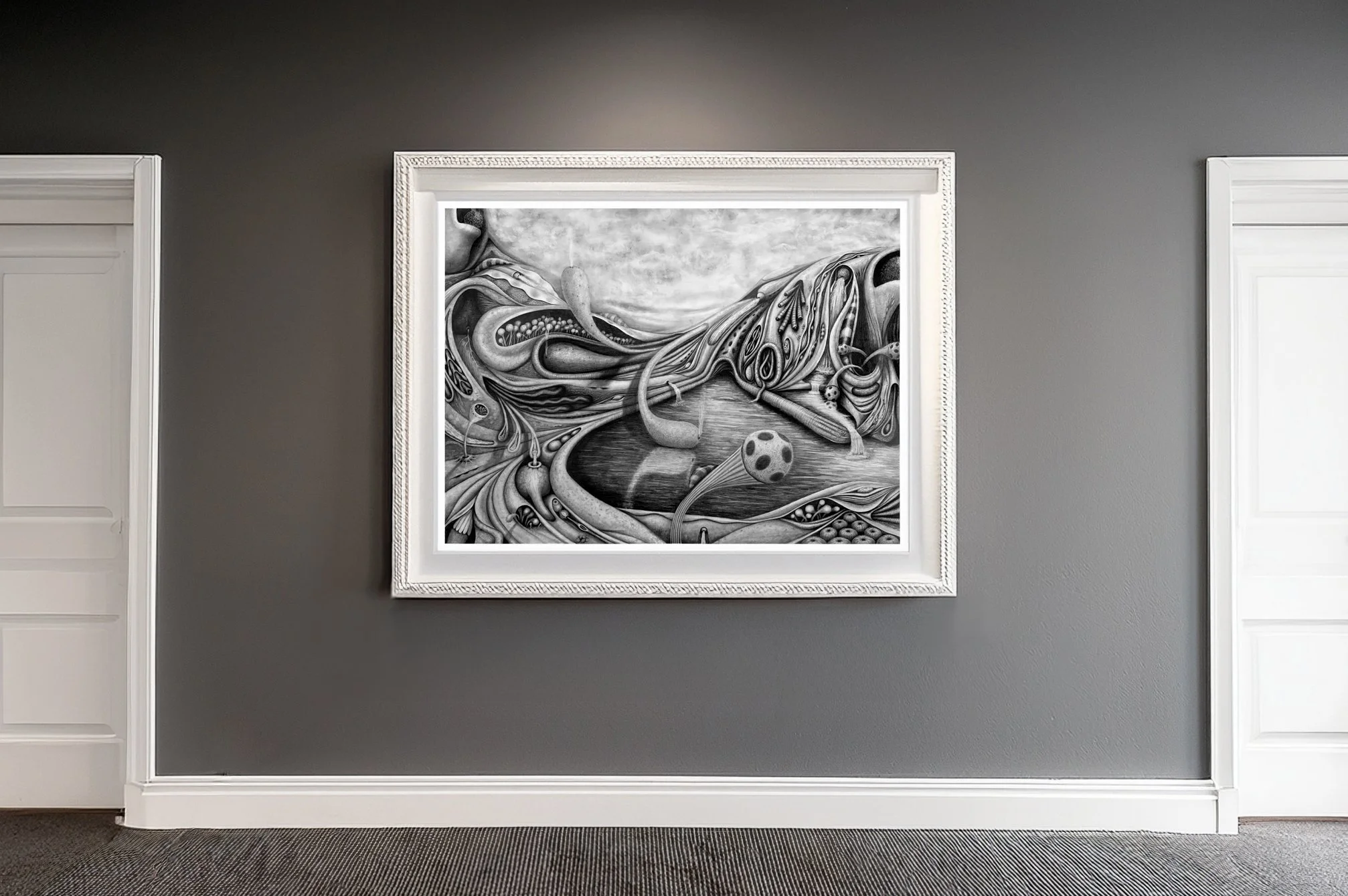 These pieces are graphite on acid free paper. They’re prepared with an archival coating which prevents smearing and eliminates light sheen. Shipped in a tube via FedEx or UPS ground. Tax and shipping additional.